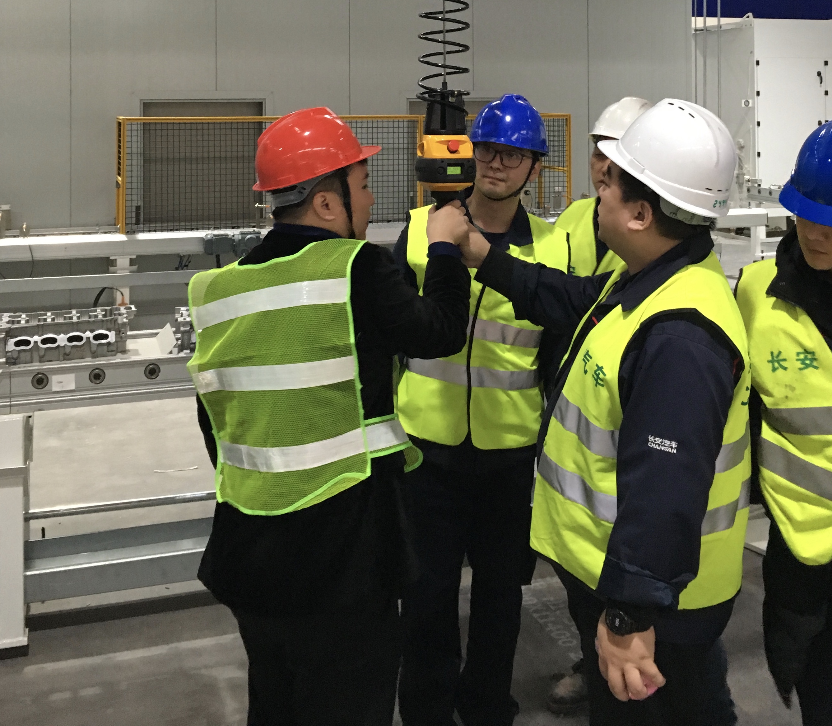 手柄内部配置有光电感应装置,该装置可以识别操作人员是 否到位,除非操作人员发出运动指令,否则该装置不允许设备运行。